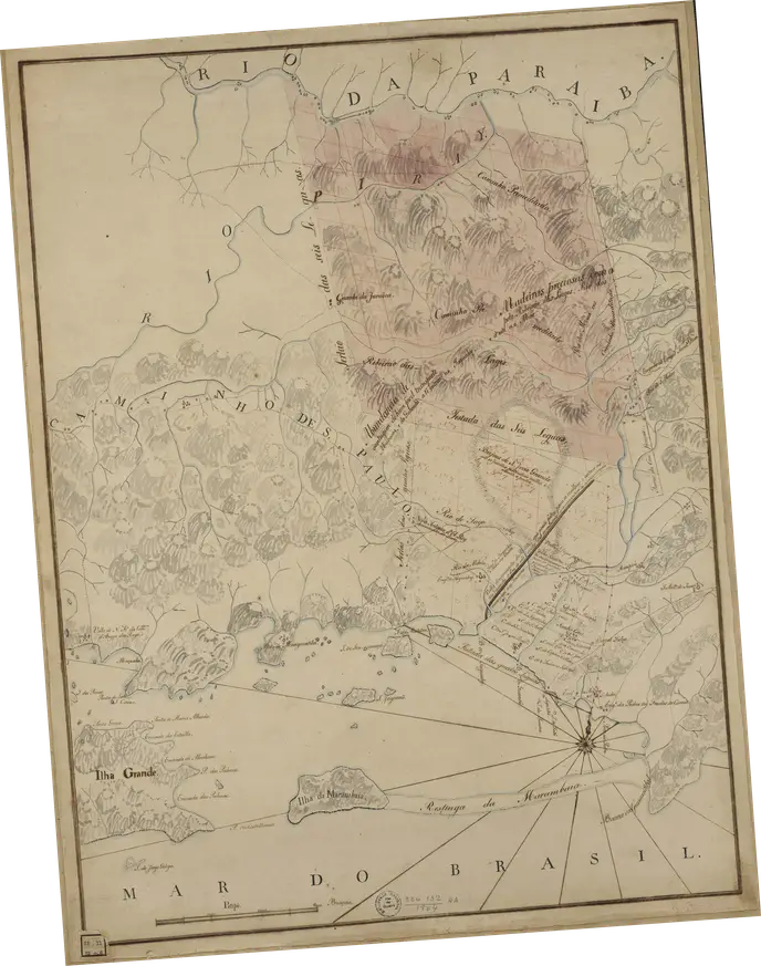 2. No mapa do séc. XVIII, o Caminho de São Paulo passa pela “Freguesia de Taguahy, a Aldeia dos Indios”. Proprietário: Fundação Biblioteca Nacional [Domínio público]